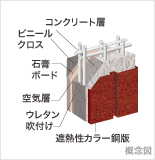 塗膜中に特殊な熱反射性顔料を添加することにより、熱線(近赤外線)を選択的に反射する機能を付加。太陽光による鋼板(屋根材等)の温度上昇を制御し、屋内への侵入熱を低減。夏季の冷房負荷軽減による省エネルギー効果が期待できます。