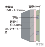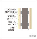 建物の外観を美しく彩るばかりでなく、室内環境を快適に包み建物を支える役目も果たす外壁は、妻壁約150mm〜180mmの厚さを確保しました。遮音・断熱性にも配慮した構造を採用しています。(非構造壁等を除く)