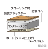 軽量で固い衝撃による音を軽量床衝撃音といい、コツコツ、トントンと表現される高周波数帯域の音が主成分です。椅子を移動したときの音や食器・硬貨の落下音などがこれにあたり、本物件では生活音への対策として高い水準の遮音性を有する、LL - 45等級相当の二重床構造を採用しています。(一部住戸・部分を除く)