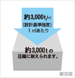 地上部躯体のコンクリート設計基準強度を30N/mm²以上に規定。1m²で約3000tの圧縮に耐えられる強度です。