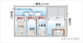 新鮮な外気を取り入れて住戸内に自然な空気の流れをつくり、汚れた空気や有害物質などを排出します。